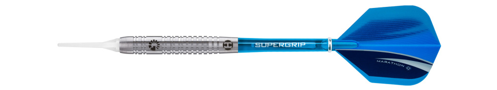 Miękkie wolframowe lotki Genesis o doskonałym designie zachwycą każdego gracza, który chce wygrać. Dzięki precyzyjnemu radełkowaniu barrela rzutki idealnie leżą w dłoni. Niebieskie uchwyty Supergrip Aqua i eskadry Marathon 1505 nadają rzutkom niepowtarzalny wygląd. W zestawie znajduje się również twarde etui.