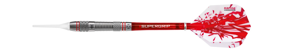 Rzutki Rapide z miękkiego wolframu zostały opracowane z myślą o prawdziwych graczach. Beczki są kombinacją wielu rowków, które sprawiają, że styl chwytu rzutki jest bardziej zróżnicowany. Każda beczka została wyprodukowana przy użyciu najnowszej technologii CNC. Całość uzupełniają gustowne czerwone pierścienie. Waga rzutki wynosi +/- 0,5 g. Lufy są uzupełnione uchwytami Supergrip Red i nowymi lotkami Rapide.