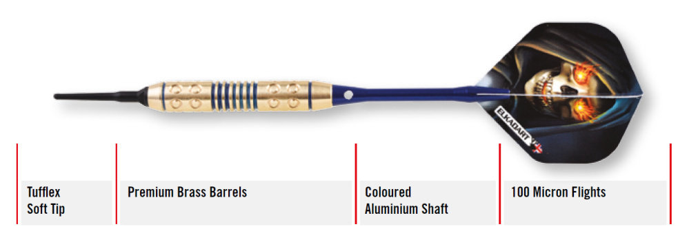 Miękkie rzutki Elkadart Nightmare to rzutki z mosiężnymi lufami, które są uzupełnione aluminiowymi uchwytami i 100-mikronowymi kwadratami.