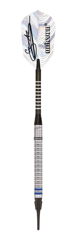 Miękkie lotki Unicorn World Champion Phase 3 to lotki wolframowe (90% wolframu) z lufami ozdobionymi napisem Unicorn i podpisem Gary'ego Andersona.