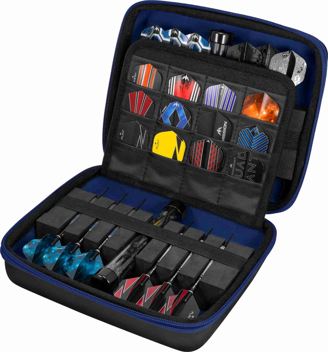 Etui na rzutki Mission Freedom Luxor to luksusowe etui wykonane z wytrzymałego materiału EVA, które pozwala bezpiecznie przechowywać do czterech zestawów zmontowanych rzutek.