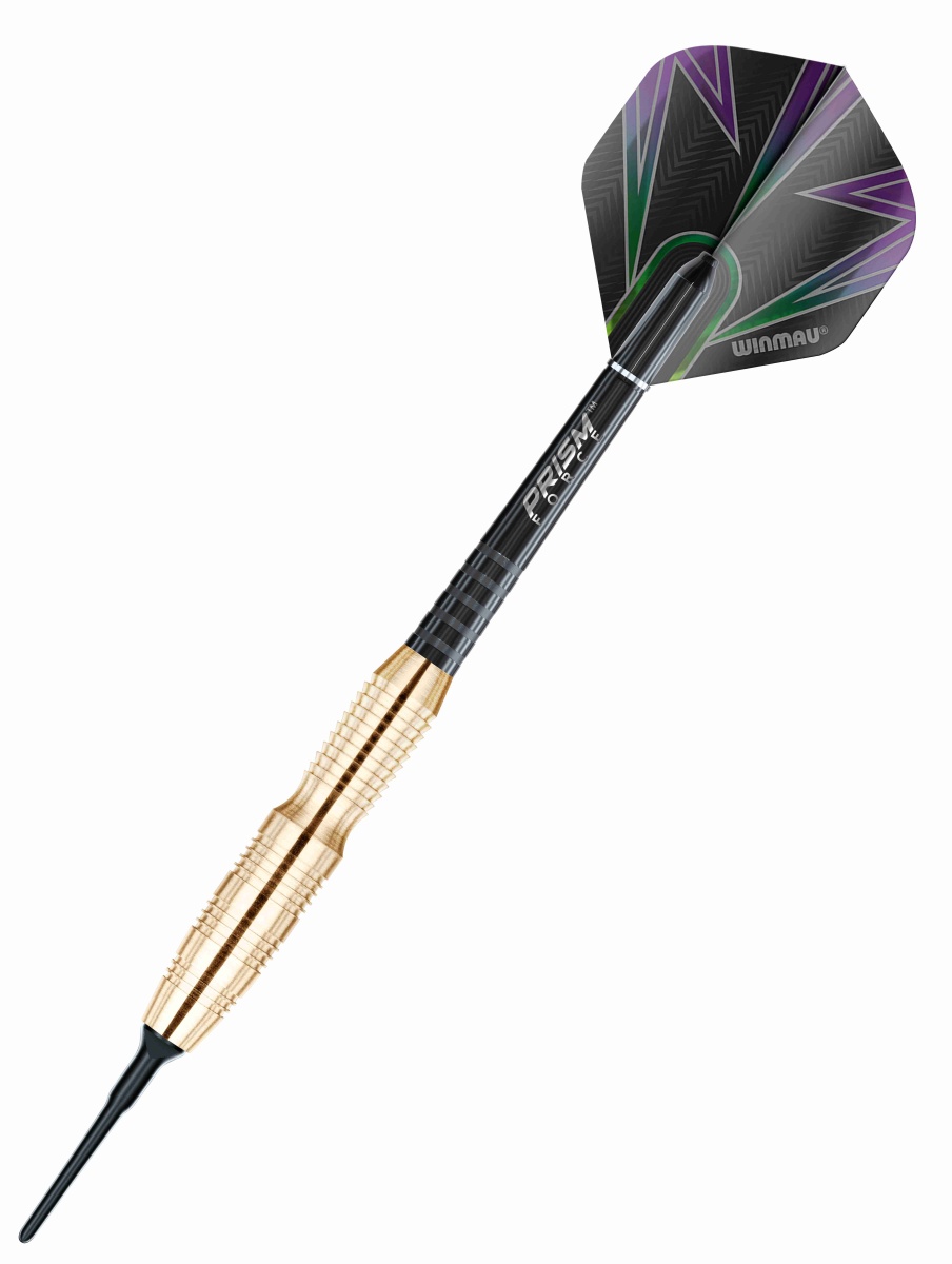 Miękkie rzutki Winmau Simon Whitlock to mosiężne rzutki ze złotymi lufami. Lufy są radełkowane, idealnie dopasowują się do dłoni i są ozdobione logo Winmau. Uzupełniają je uchwyty Prism Force i pałki Prism Alpha.