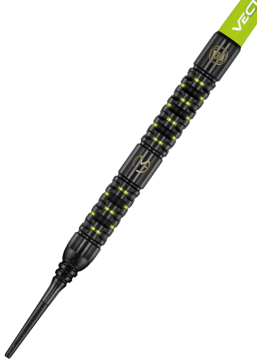 Lotki Winmau Michael van Gerwen - Adrenalin soft to lotki wolframowe (90% wolframu) o doskonałym, nowoczesnym wyglądzie. Fascynujące czarne beczki z powłoką onyksową są uzupełnione zielonymi metalowymi detalami, które nadają rzutkom niepowtarzalny wygląd.