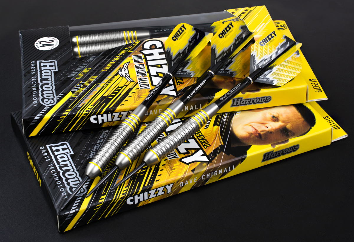 Stalowe rzutki Chizzy to mosiężne rzutki z lufami, które są radełkowane na całej długości i ozdobione żółtymi paskami. Lufy są zakończone uchwytami Supergrip i listwami Chizzy Prime.