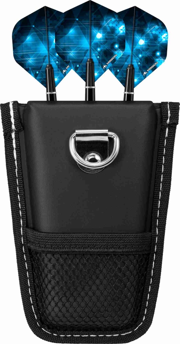 Mission POD Darts Case to etui na jeden zestaw rzutek wykonane z materiału EVA. Wytrzymałe etui zapewnia fantastyczną ochronę rzutek. Jest praktyczny, przenośny, z kieszenią na akcesoria i siatką ze stali nierdzewnej z tyłu. Etui jest ozdobione białymi szwami i logo Mission.