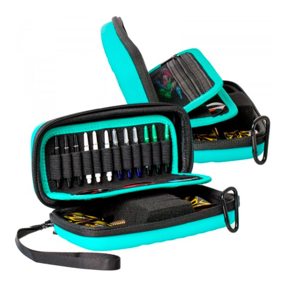 Etui na rzutki Bull's Orbis to najnowsza generacja twardych etui Bull's. Dzięki piankowemu wzmocnieniu, etui to zapewnia idealne trzymanie i ochronę dla kompletnego zestawu rzutek. Ponadto etui posiada kieszenie na akcesoria, które oferują miejsce na 6 zestawów kijów i 12 uchwytów. W zestawie znajduje się poręczna, zapinana na zamek kieszeń na miękkie końcówki i akcesoria. Kabura Orbis została wykonana z wysokiej jakości wytrzymałego materiału EVA i charakteryzuje się nowoczesnym designem z logo Bull's. Eskadry mogą pozostać na lotkach bez uszkodzenia. Etui posiada zamek błyskawiczny i łatwo się otwiera. Etui zawiera również pasek na rękę.