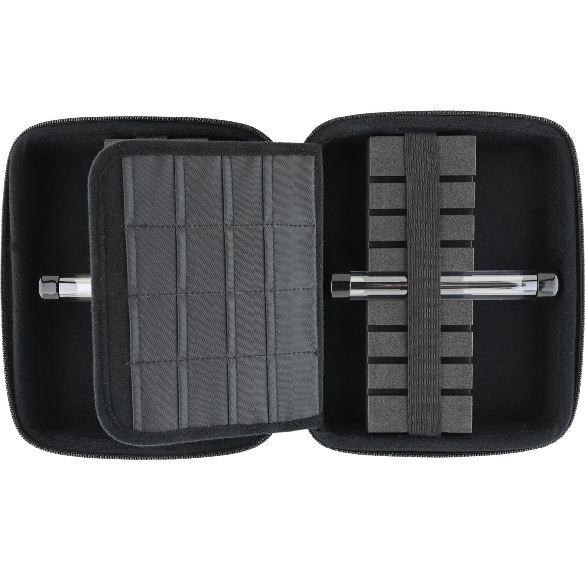 Etui na rzutki Mission Freedom Luxor to luksusowe etui wykonane z wytrzymałego materiału EVA, które pozwala bezpiecznie przechowywać do czterech zestawów zmontowanych rzutek. Etui ma również kilka kieszeni na akcesoria i zawiera dwa plastikowe woreczki na końcówki. Etui jest solidne, miękkie w dotyku i ozdobione logo Mission, nadając mu niepowtarzalny wygląd. Kabura posiada pasek ułatwiający przenoszenie.