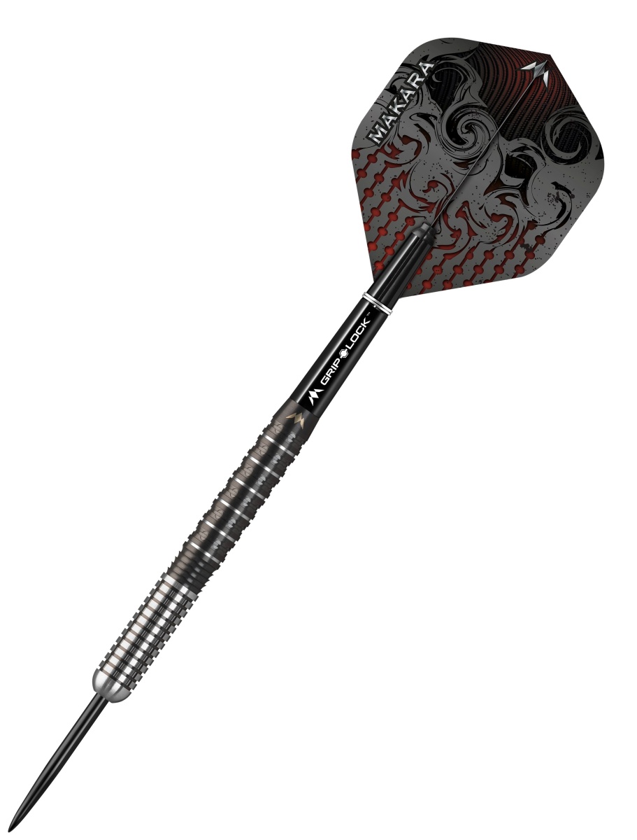 Stalowe rzutki Mission Makara to wolframowe rzutki (90% wolframu) z czarno-srebrnymi lufami. Lufy są zakończone nylonowymi uchwytami Grip Lock i pałkami Mission Makara.