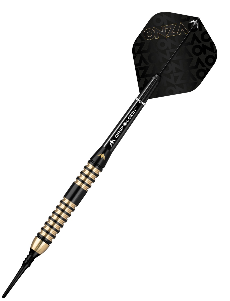 Mission Onza Soft to mosiężne rzutki z czarnymi i złotymi lufami. Lufy są uzupełnione nylonowymi uchwytami Grip Lock i pałkami Mission Onza.