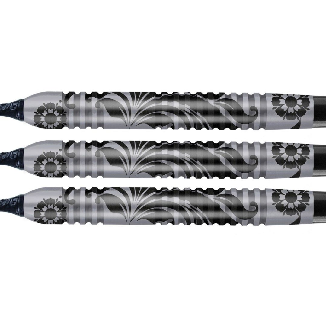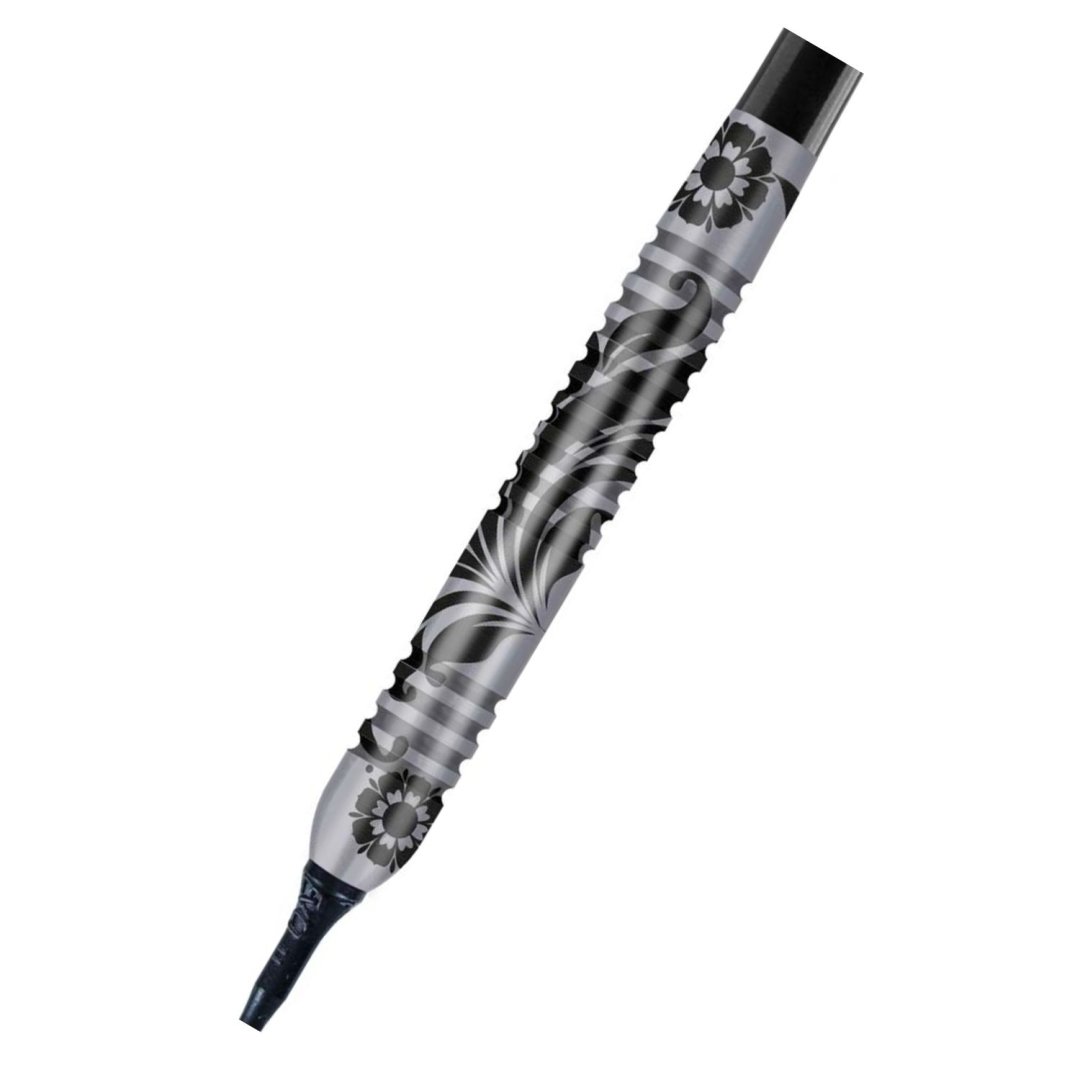 Miękkie lotki Flora Zina to lotki wolframowe (80% wolframu), które mają lufy ozdobione motywem kwiatowym. Beczki są uzupełnione nylonowymi uchwytami i pałkami Flora.