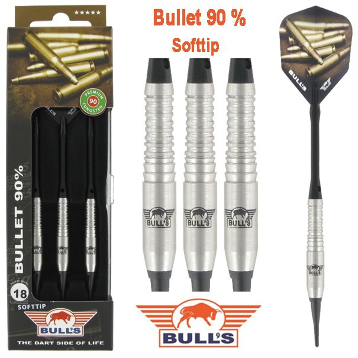 Miękkie lotki Bullet to lotki wolframowe (90% wolframu) z lufami, które są gładkie z przodu i radełkowane z tyłu. Lufy są ozdobione logo Bull's.