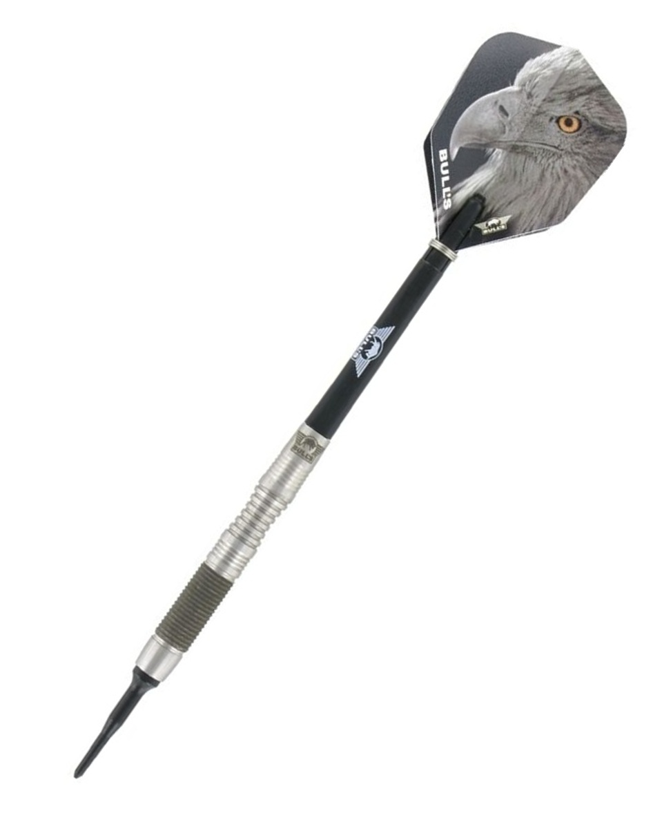 Miękkie lotki Eagle to lotki wolframowe (85% wolframu) z lufami, które idealnie pasują do dłoni. Beczki mają trzy rodzaje rowków i są ozdobione logo Bull's.