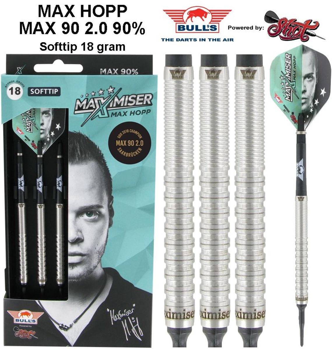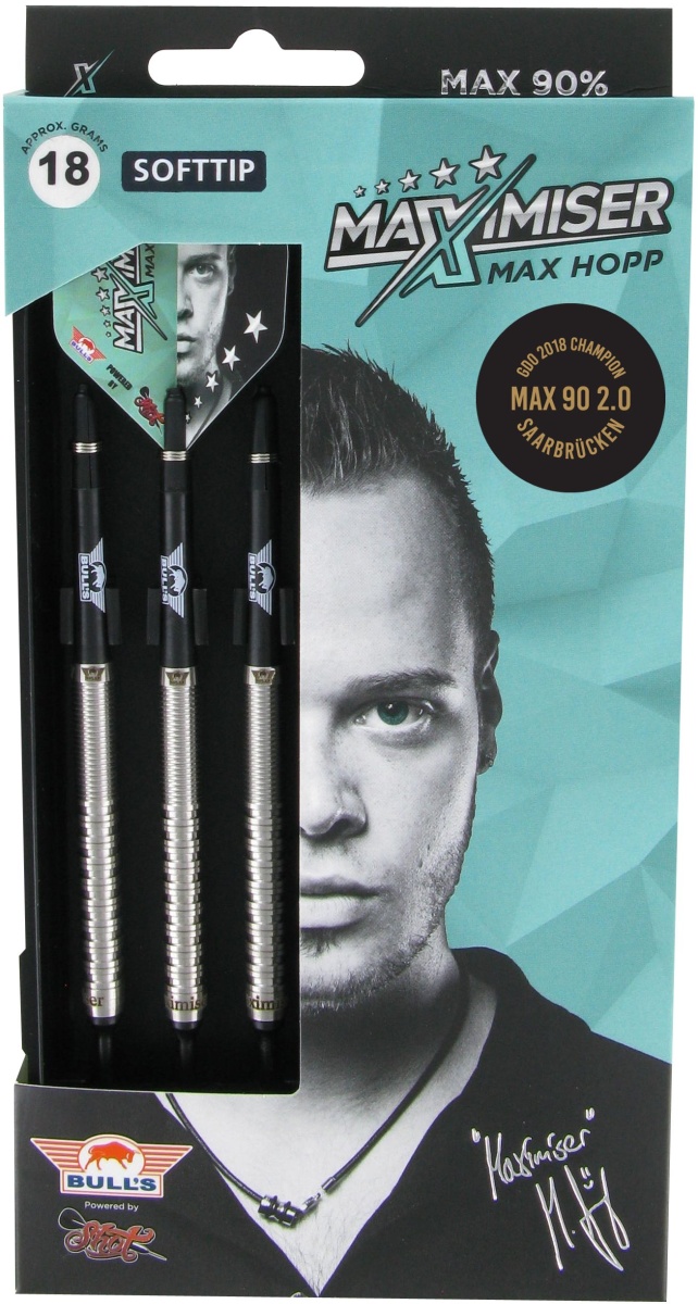 Miękkie lotki Max Hopp to wysokiej jakości lotki wolframowe (90% wolframu) z lufami, które mają dwa rodzaje rowków (Ringed, Wave) i są ozdobione logo Bull's.