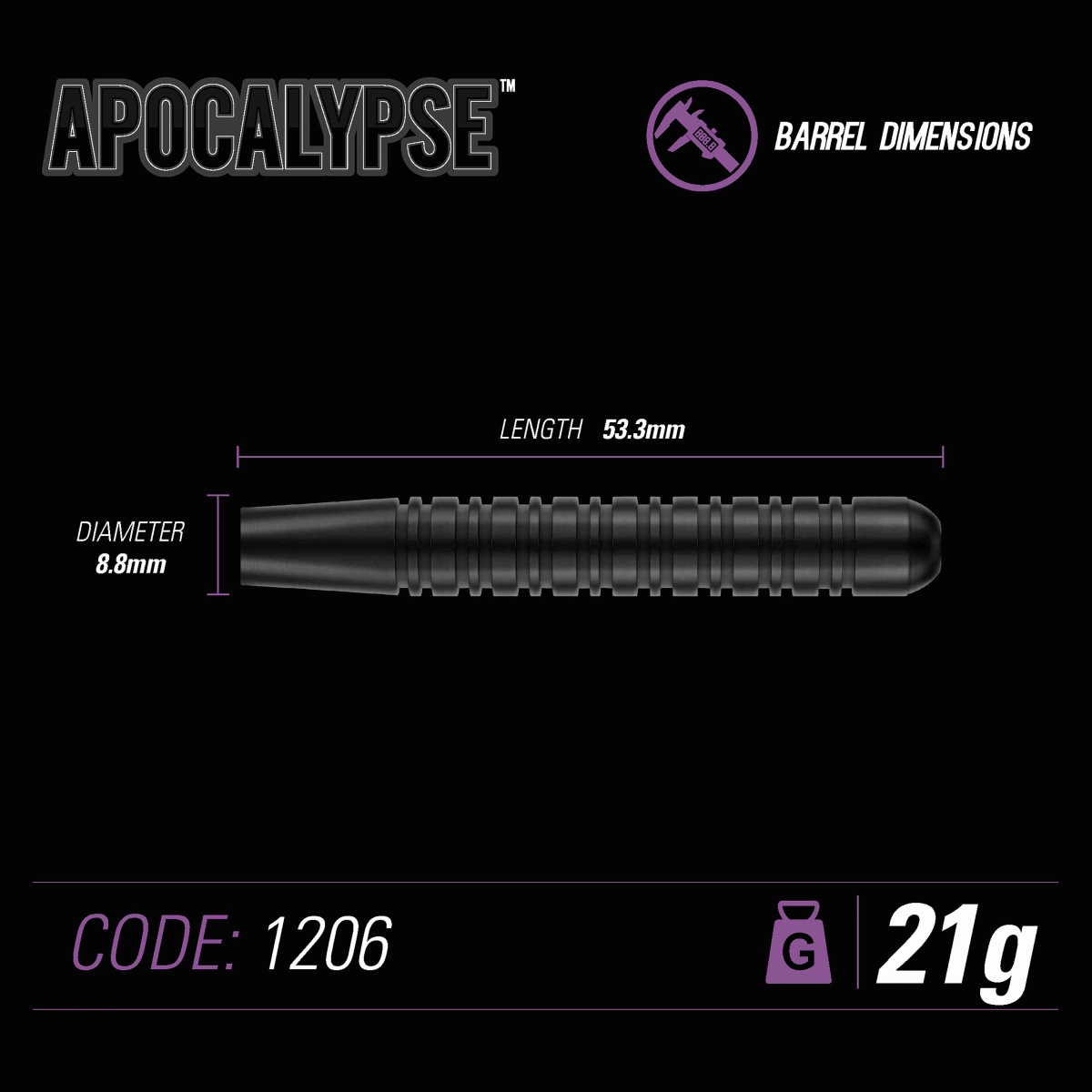 Stalowe rzutki Winmau Apocalypse to mosiężne rzutki o eleganckim wyglądzie. Czarne lufy są radełkowane na całej długości. Beczki są uzupełnione uchwytami Prism i eskadrami Prism Alpha.