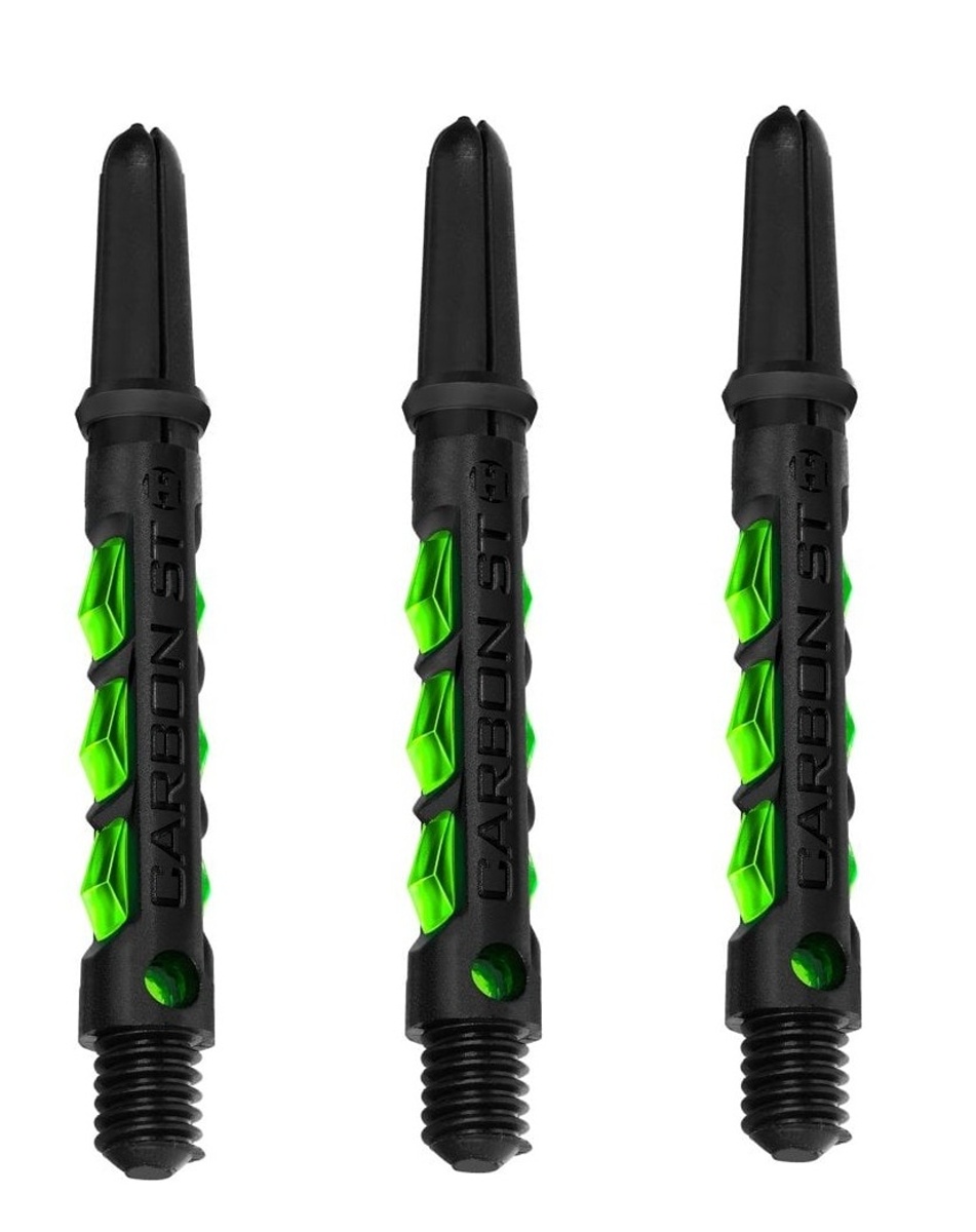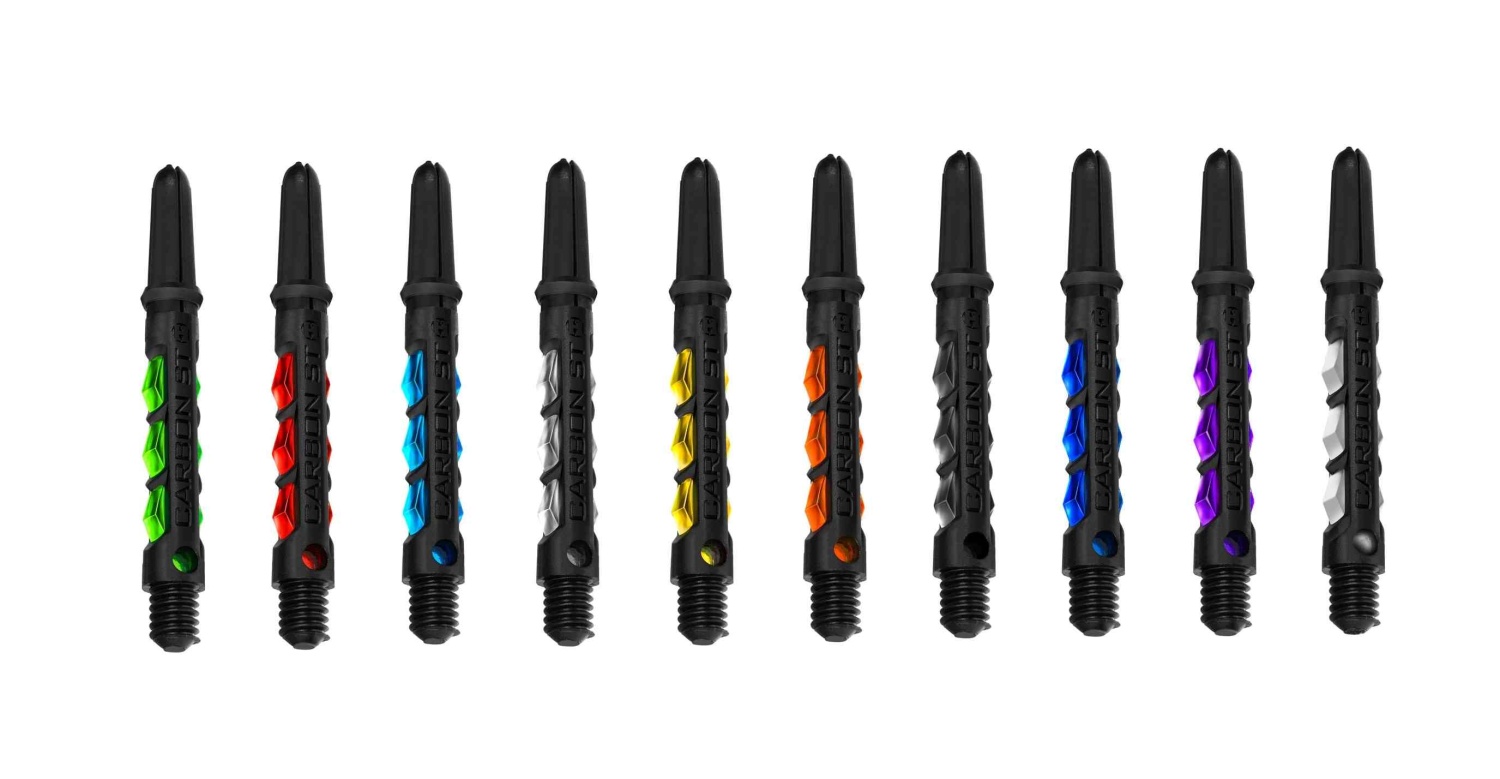 Chwyty Harrows Carbon ST to najnowsze chwyty z włókna węglowego, które przełamują uprzedzenia graczy co do tego, jak powinien wyglądać odpowiedni chwyt. Technologia podwójnego formowania wtryskowego, wraz z wysokiej jakości poliwęglanami, poprawiła kluczowe cechy uchwytów. Chwyty Carbon ST mają unikalny profil, który kieruje przepływ powietrza, tworząc bardziej stabilny tor lotu. Uchwyt ma zaokrąglone krawędzie, które poprawiają lot i zmniejszają ugięcie, gdy strzała uderza w cel. Są bardzo wytrzymałe, a ryzyko pęknięcia jest minimalne. Uchwyty są dostępne w kilku kombinacjach kolorystycznych i w trzech rozmiarach.