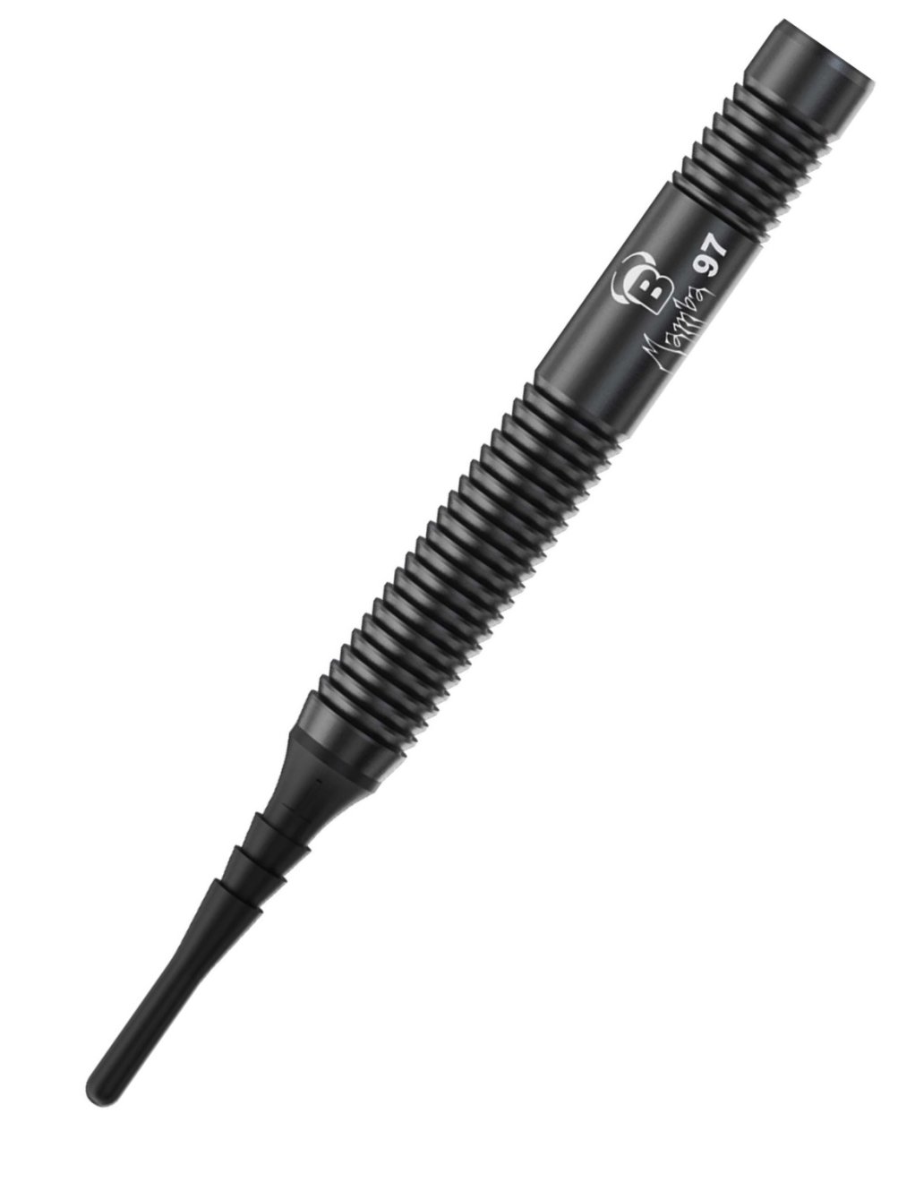 Bull's Mamba 97 soft to bardzo wysokiej jakości lotki wolframowe (97% wolframu). Beczki z czarną powłoką tytanową są smukłe i gwarantują doskonały chwyt i doskonałą stabilność. Ozdobione logo Bull's i marką Mamba 97. Uzupełnieniem beczek są aluminiowe uchwyty Mamba 97 i pałki Power Flite w specjalnym wzorze Mamba 97.