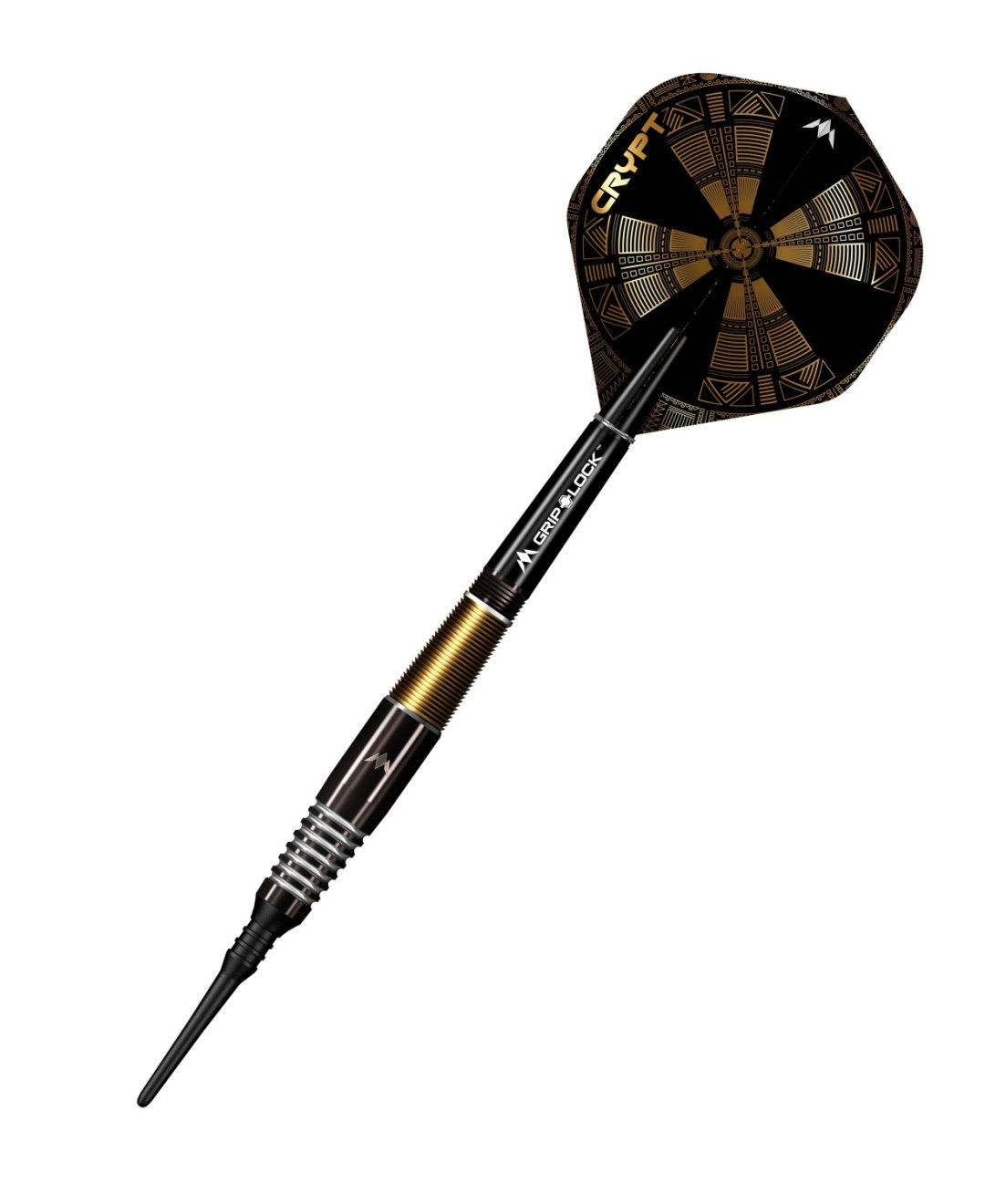 Miękkie rzutki Mission Crypt to wolframowe rzutki (90% wolframu) z czarnymi i złotymi lufami o nieziemskim wyglądzie. Beczki są uzupełnione nylonowymi uchwytami Grip Lock i pałkami Mission Crypt.