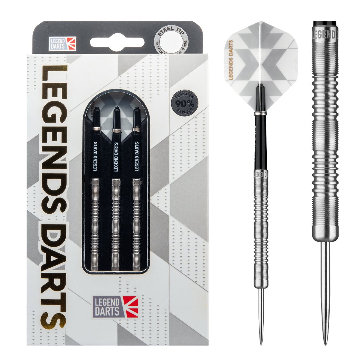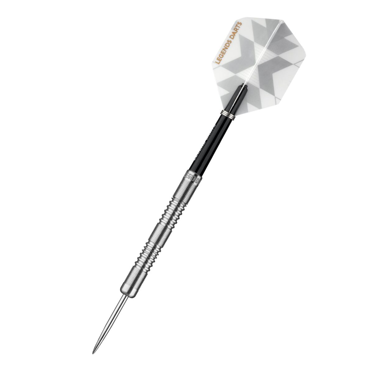 Stalowe lotki Legend Darts Pro Series to lotki wolframowe (90% wolframu) z lufami, które łączą dwa rodzaje rowków i są uzupełnione nylonowymi uchwytami i pałkami Legend Darts.