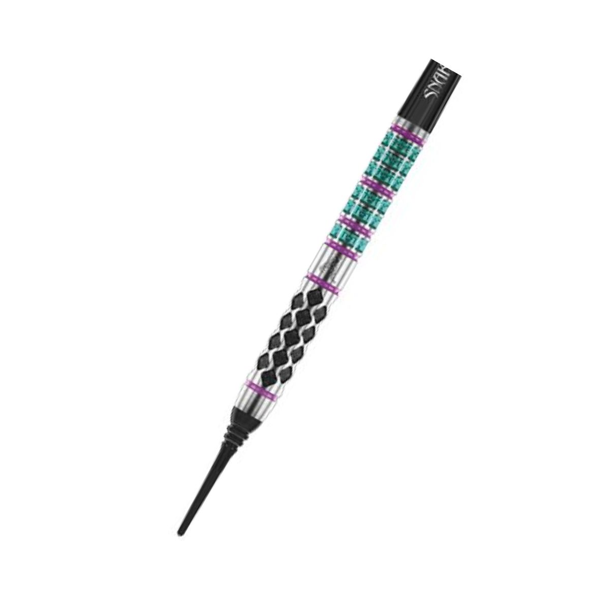 Miękkie rzutki Red Dragon Peter Wright Snakebite Supa Venom to wolframowe rzutki (90% stopu wolframu) z lufami o unikalnym, zapierającym dech w piersiach designie. Oryginalne rowki są podkreślone przez połączenie czerni, fioletu i turkusu. Lufy są uzupełnione uchwytami Nitrotech i rękojeściami Red Dragon.