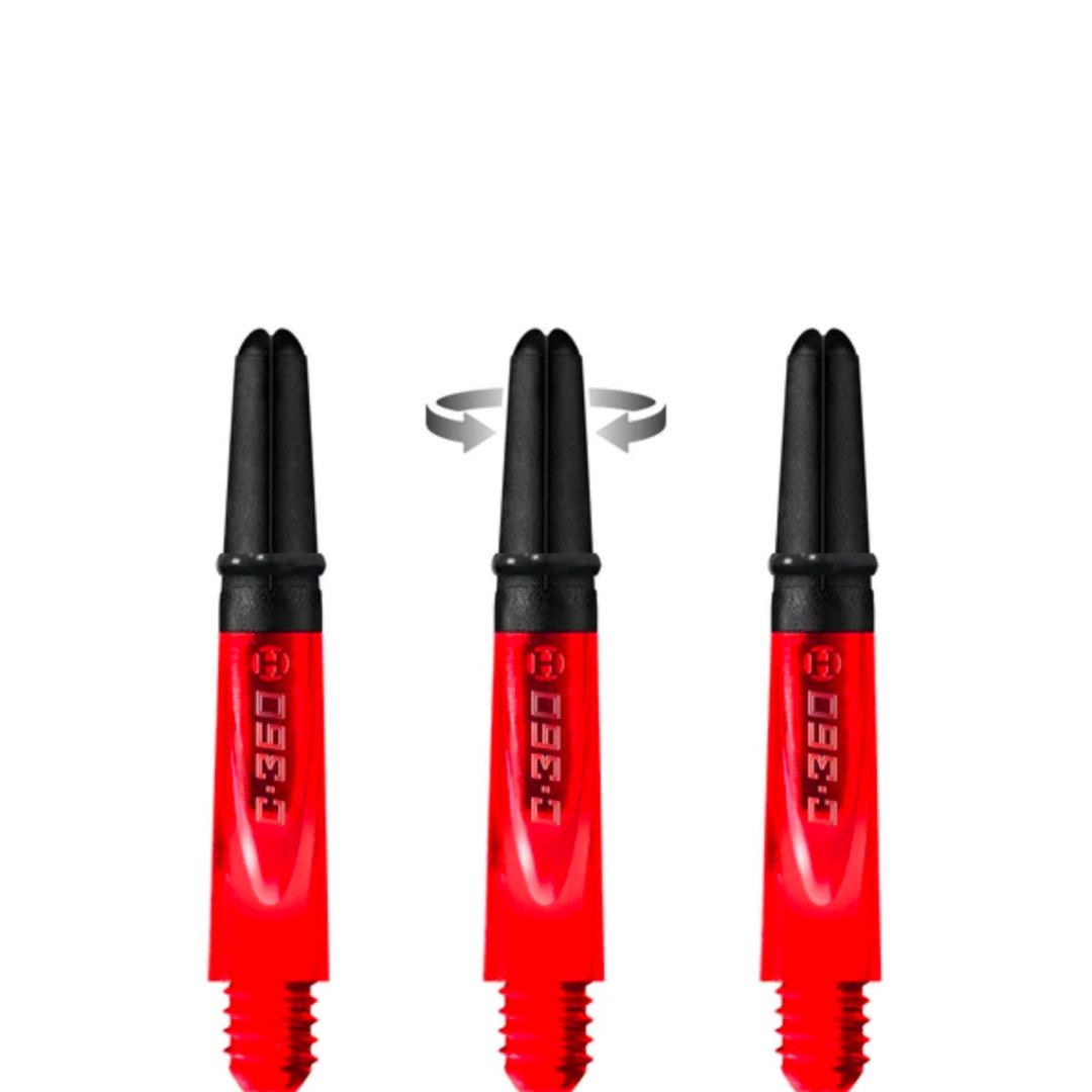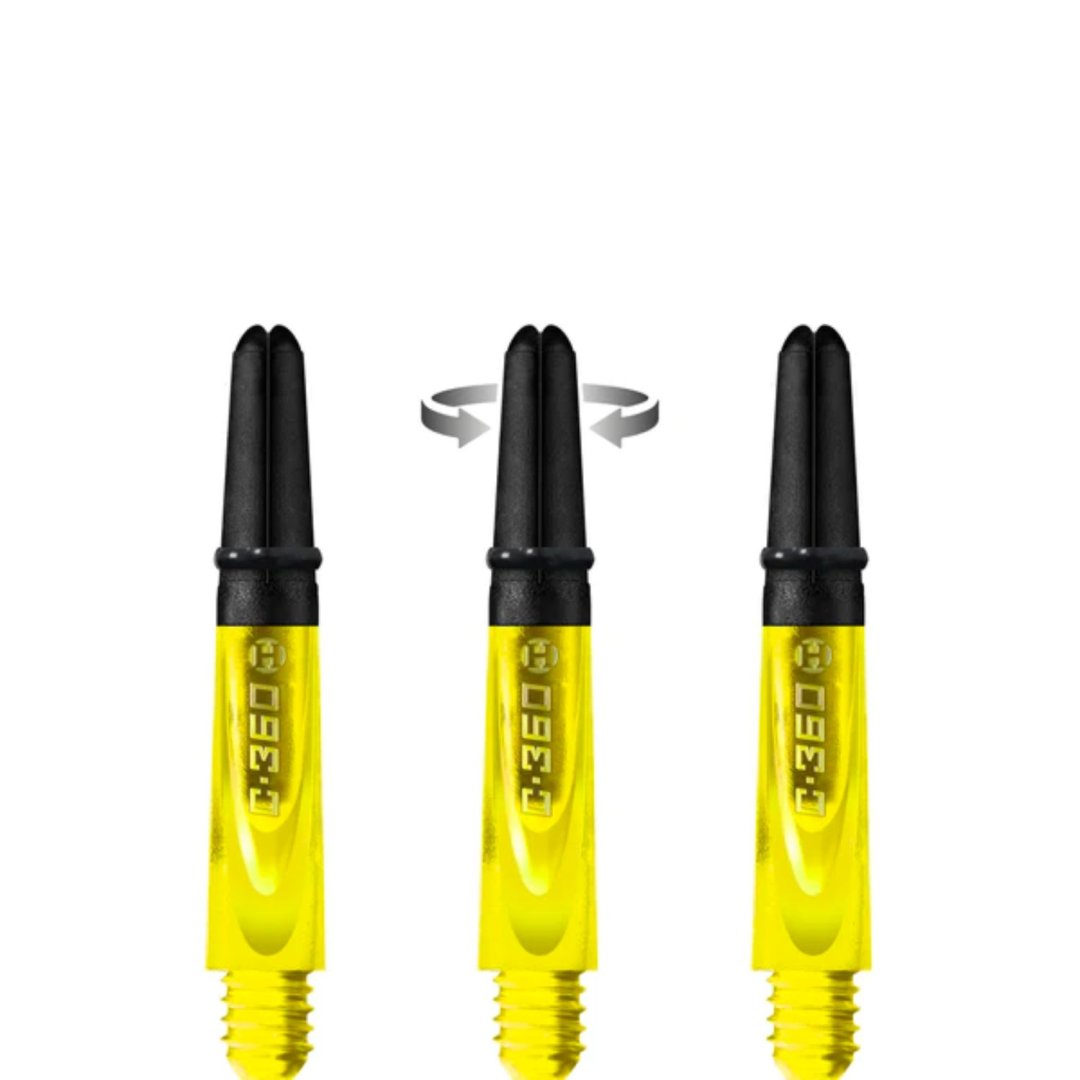Uchwyty Harrows Carbon 360 to nowe uchwyty, które poprawiają aerodynamikę dzięki unikalnemu profilowi i zwiększają szanse na zdobycie większej liczby punktów dzięki stałemu obrotowemu wierzchołkowi. Chociaż uchwyty mają obrotową końcówkę, w locie zachowują się jak zwykłe uchwyty. Wymienna końcówka uchwytu nie obraca się spontanicznie, ale tylko po kontakcie z inną strzałą. Pozwala to na większą liczbę rzutek umieszczonych w celu, wyższą punktację i minimalne odbicia. Same uchwyty są wykonane z wytrzymałego poliwęglanu, podczas gdy obrotowa wymienna część jest wykonana z litego kompozytu węglowego. Uchwyty zawierają pierścienie, które sprawiają, że nietoperze dobrze się trzymają. Dostępne są w trzech rozmiarach i sześciu kolorach.