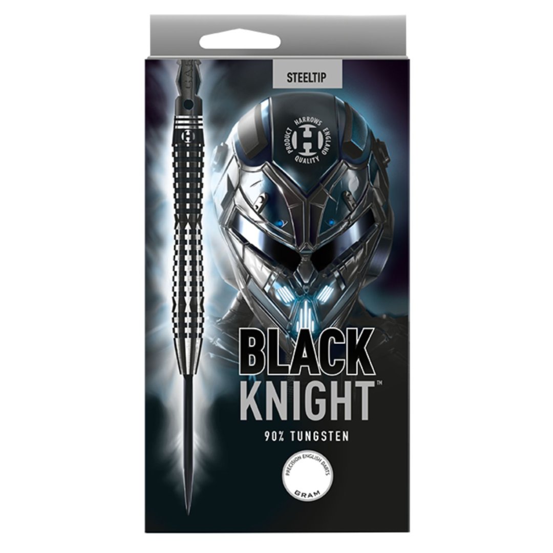 Stalowe lotki Harrows Black Knight to wysokiej jakości lotki wolframowe (90% wolframu) o doskonałej konstrukcji. Beczki mają symetryczne liniowe rowki na całej długości. Są one pokryte czarnym azotkiem tytanu, ale ponownie naostrzone, aby pozostawić oszałamiające srebrne części, nadając rzutce niepowtarzalny wygląd. Lufy są uzupełnione uchwytami Carbon ST i pałkami Prime Black Knight.