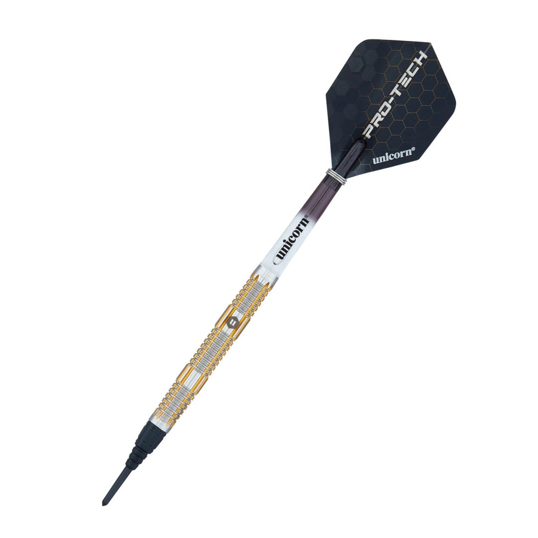 Miękkie lotki Unicorn Pro-Tech to lotki wolframowe (90% wolframu) z lufami z oryginalnymi złotymi rowkami. Beczki są uzupełnione nylonowymi uchwytami Gripper i eskadrami Pro-Tech.