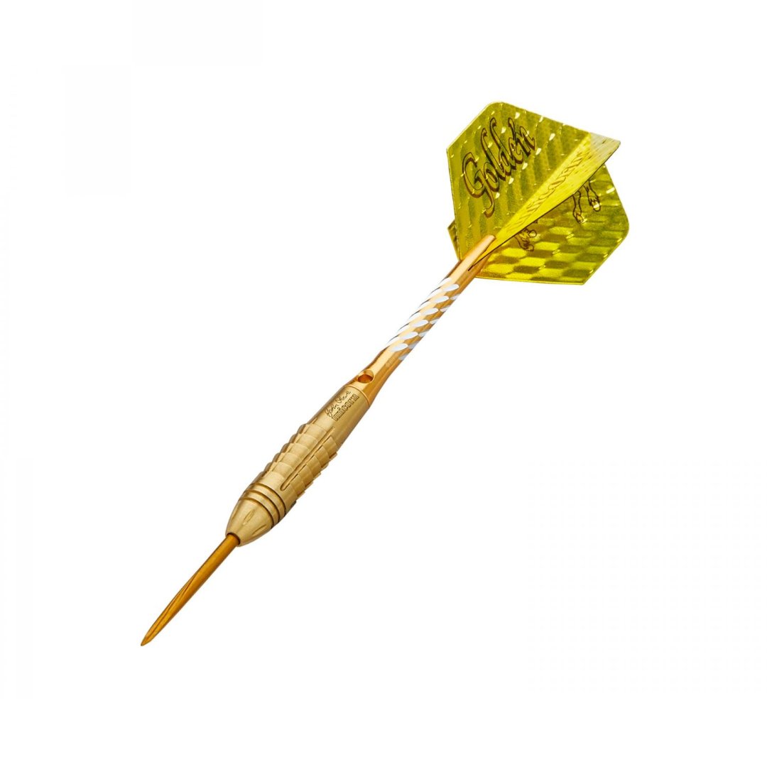 Stalowe lotki World Champion Phase 3 to lotki wolframowe (90% wolframu) ze złotymi lufami, ozdobione napisem Unicorn i podpisem Johna Lowe'a.