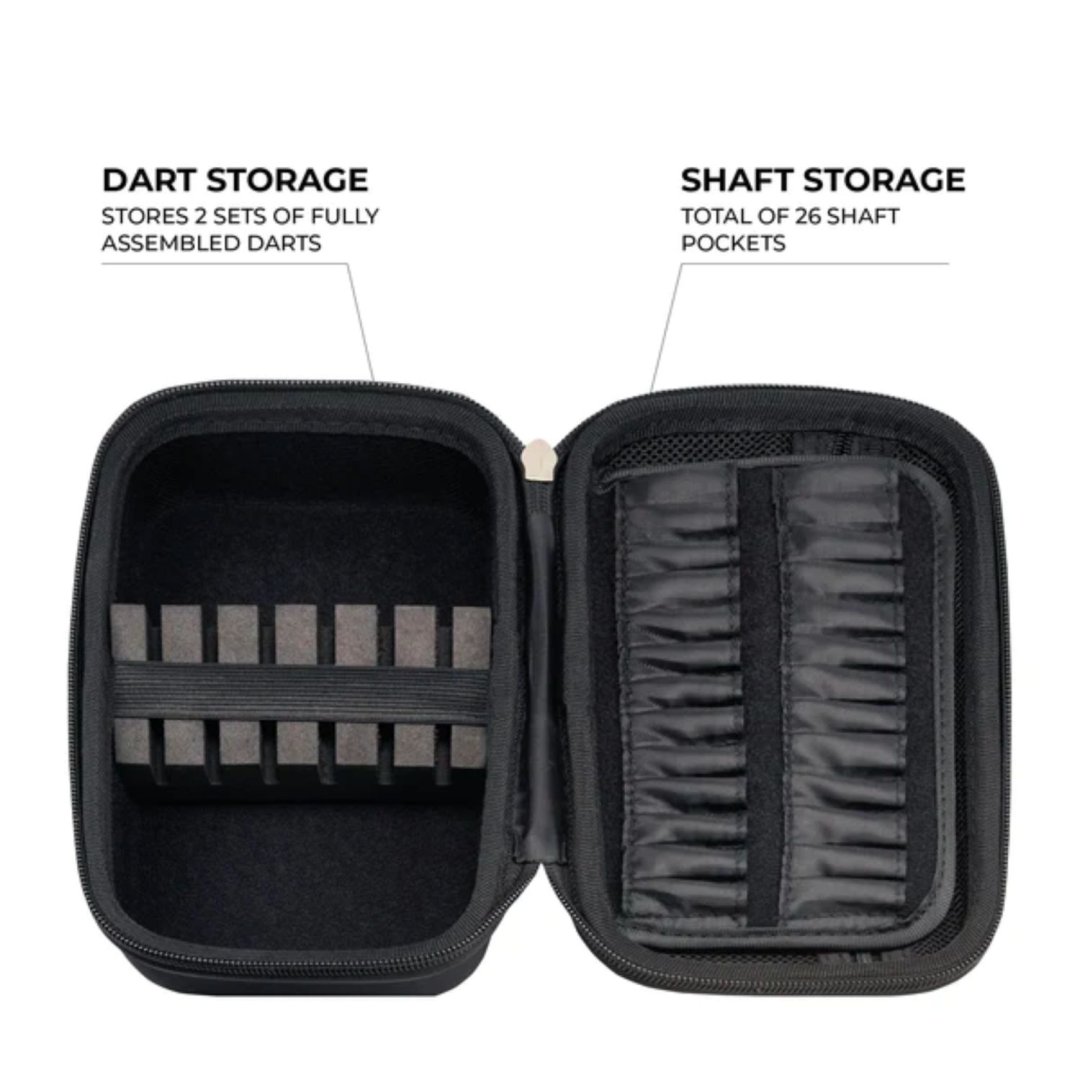 Mission Football Dart Case to stylowe etui wykonane z wytrzymałego materiału EVA, które pozwala bezpiecznie przechowywać dwa zestawy zmontowanych rzutek. Etui ma zamek błyskawiczny, a wewnątrz znajduje się również kieszeń na akcesoria.