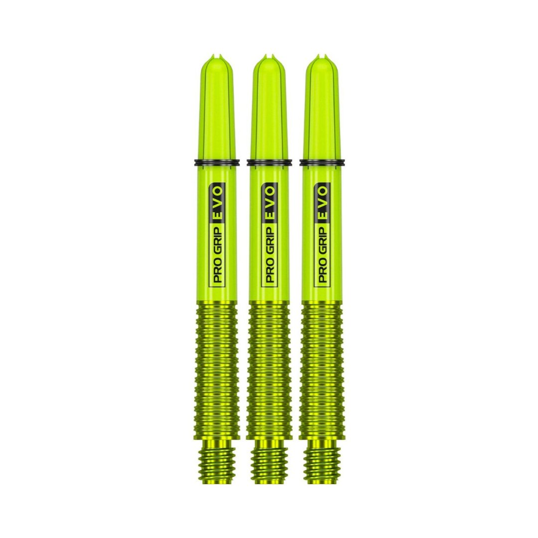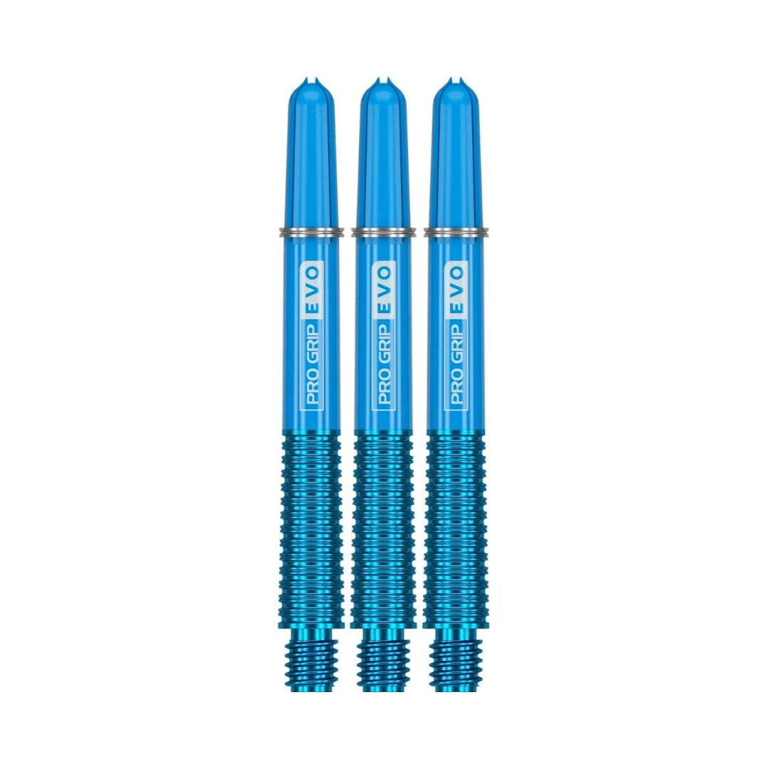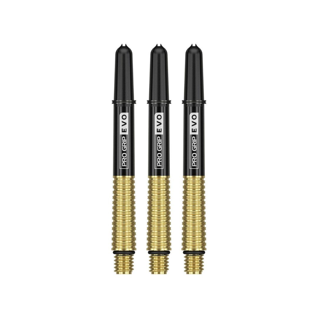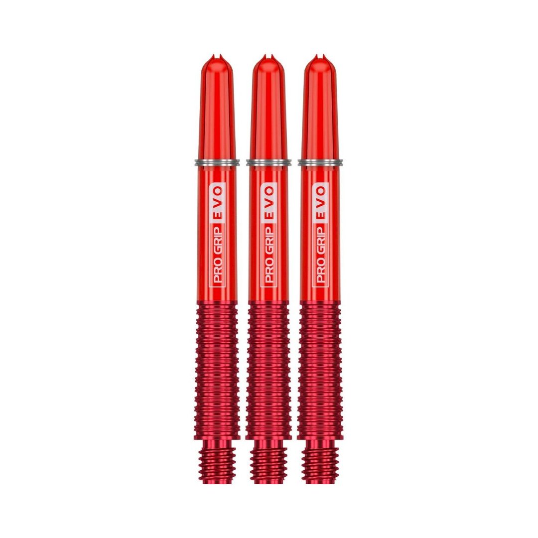 Uchwyty Target Pro Grip EVO to unikalne dwuczęściowe uchwyty, które mają metalową i radełkowaną część dolną oraz plastikową część górną z napisem Pro Grip EVO. Metalowa część wkręcana jest w plastikową część górną. Dostępne są w trzech rozmiarach i kilku kolorach.