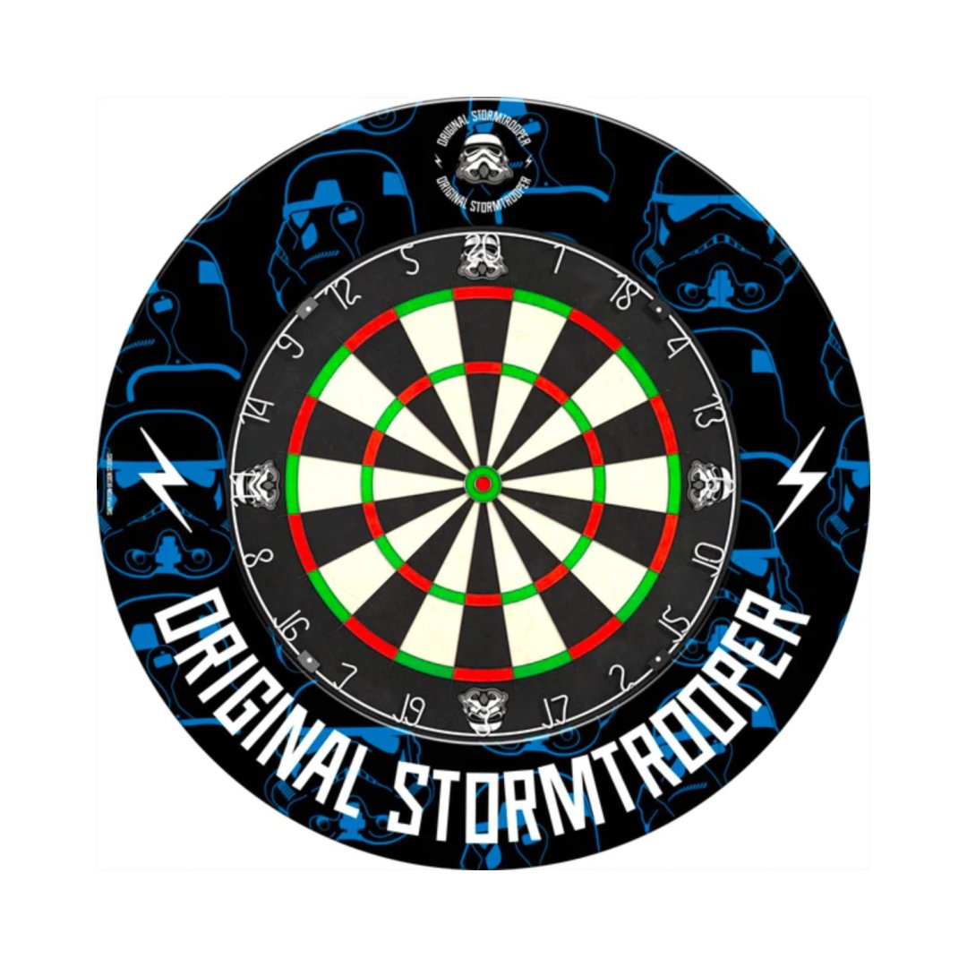 Surround Original StormTrooper to pierścień wokół celu, który chroni ściany przed przypadkowymi uderzeniami rzutkami, a także chroni rzutki, jeśli zostaną wyrzucone poza cel. Surround jest odpowiedni dla wszystkich sizalowych tarcz o klasycznych wymiarach. Osłona wykonana jest z wysokiej jakości elastycznego polimeru i jest niezwykle trwała. Wzór Storm Trooper zachwyci wszystkich fanów Gwiezdnych Wojen.