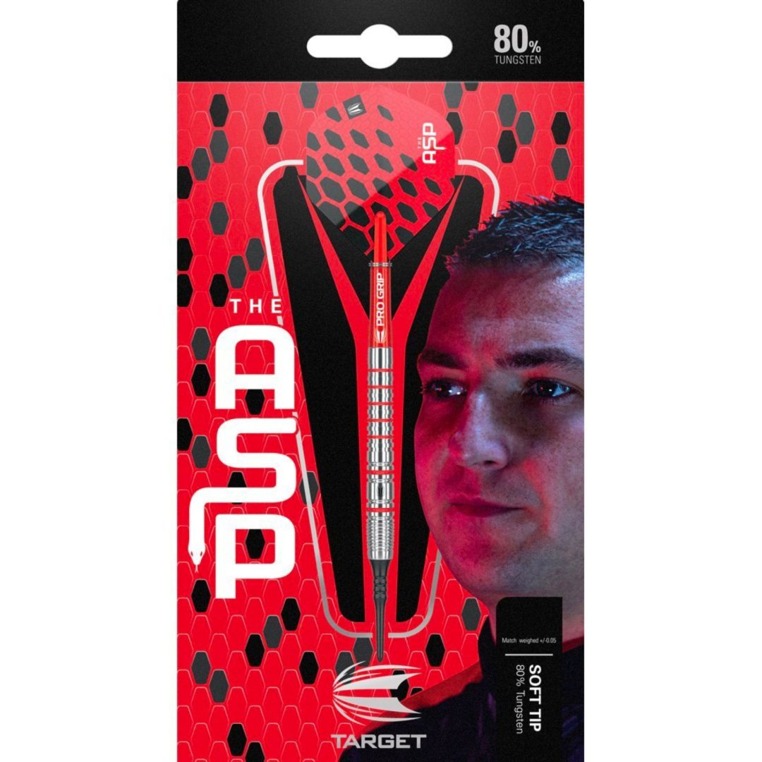 Miękkie lotki Nathan "ASP" Aspinall to wysokiej jakości lotki wolframowe (80% wolframu) z radełkowanymi lufami ozdobionymi czerwonymi paskami. Lufy są uzupełnione uchwytami Pro Grip i pałkami Nathan Aspinall.