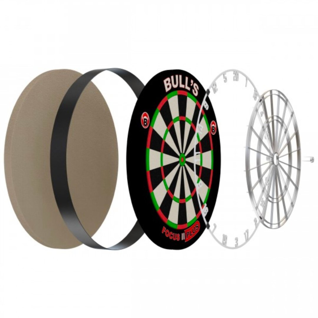 Wysokiej jakości sizalowy Focus II Plus to najlepszy cel Bull's w historii. Wszystkie elementy Focus II Plus zostały starannie zaprojektowane i połączone, aby stworzyć ten wyjątkowy cel. Najwyższej klasy technologia celowania w niesamowitym designie i doskonałym afrykańskim sizalu dla najwyższych standardów. Nowa obróbka sizalu ułatwia dopasowanie rzutek do celu i stabilizuje rzutkę. Proces ten pozwala na bardzo głębokie osadzenie pająka w sizalu, dzięki czemu odbicia są prawie wyeliminowane. Głęboko osadzony, wyjątkowo wytrzymały pająk optymalizuje obszar trafienia, co jest szczególnie widoczne w obszarze Bull's Eye. Focus II Plus ma precyzyjne wymiary turniejowe (45 x 2,5 cm), dzięki czemu jest zgodna z międzynarodowymi przepisami turniejowymi. W zestawie znajduje się instrukcja obsługi i uchwyt ścienny.