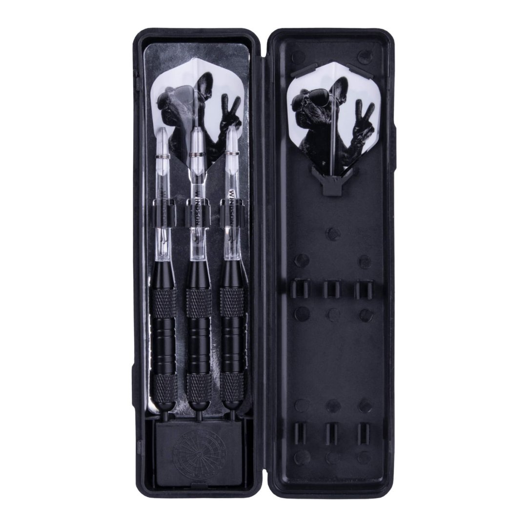 Stalowe rzutki Windson Doggy to mosiężne rzutki z czarnymi lufami odpowiednie dla początkujących. Lufy są uzupełnione nylonowymi uchwytami i pałkami Windson.