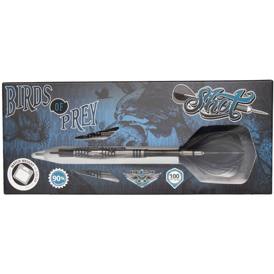 Miękkie rzutki Shot Birds of Prey to wolframowe rzutki (90% wolframu) z lufami o unikalnym designie. Lufy są uzupełnione nylonowymi uchwytami i pałkami Shot.
