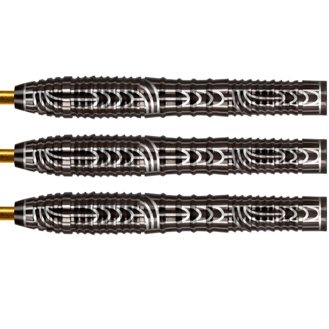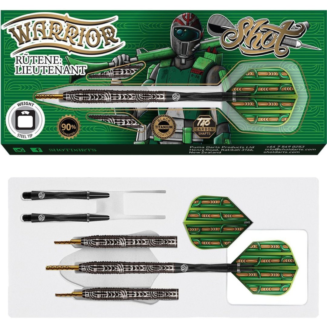 Stalowe rzutki Shot Warrior Rutene to wolframowe rzutki (90% wolframu) z oryginalnymi i absolutnie oszałamiającymi lufami. Lufy są uzupełnione nylonowymi uchwytami i listwami Shot.