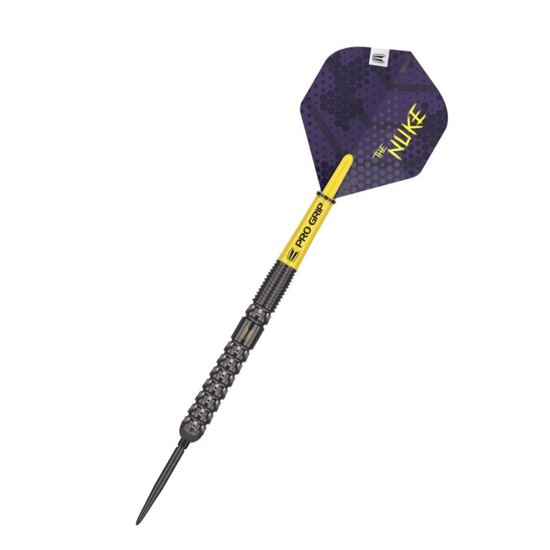 Stalowe rzutki wolframowe Luke Littler G1 SP (90% wolframu) to rzutki o unikalnym designie. Czarne barrele mają oryginalne rowki, które nadają rzutce doskonały wygląd. Lufy są wyposażone w uchwyty Pro Grip, łaty Luke Littler i końcówki Swiss Point. W zestawie znajduje się również narzędzie do wymiany końcówek Swiss Point.
