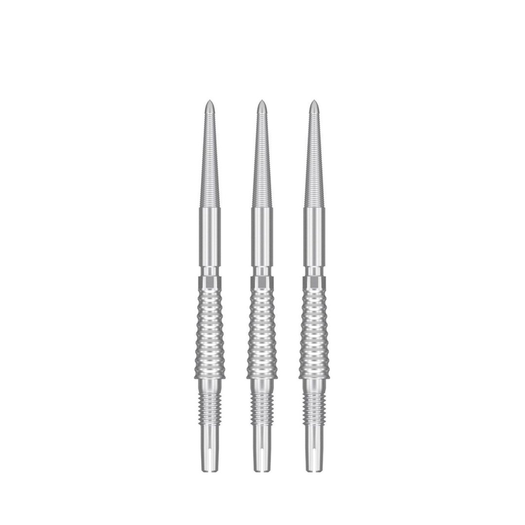 Metalowe końcówki Target Swiss Point umożliwiają zmianę długości, stylu i koloru końcówki w kilka sekund za pomocą narzędzia Swiss Point Pocket Tool. Końcówki Swiss Point są kompatybilne tylko z rzutkami z oznaczeniem Swiss Point.