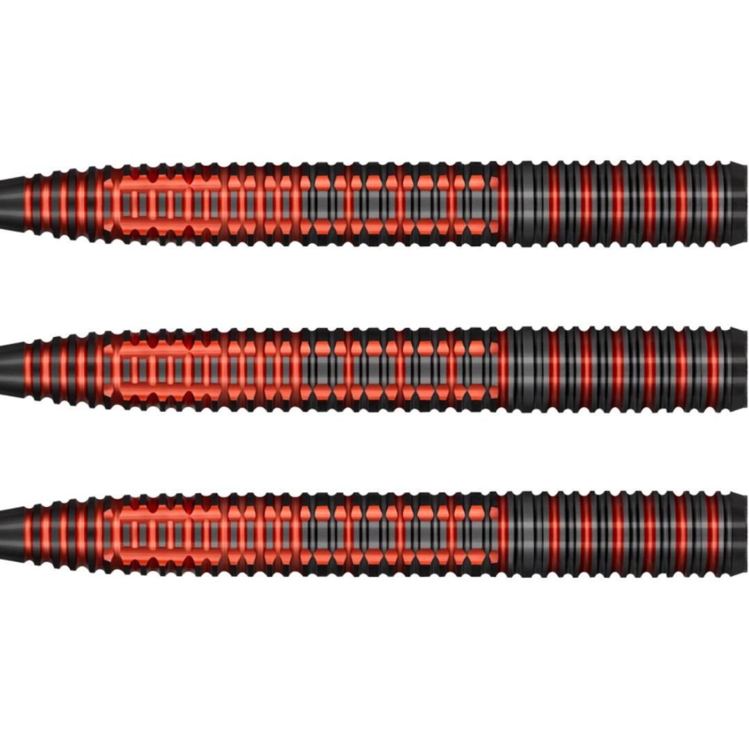 Stalowe rzutki Shot Bradley Brooks to wolframowe rzutki (90% wolframu) z czarno-pomarańczowymi lufami o unikalnym designie. Lufy są uzupełnione nylonowymi uchwytami i listwami Shot.