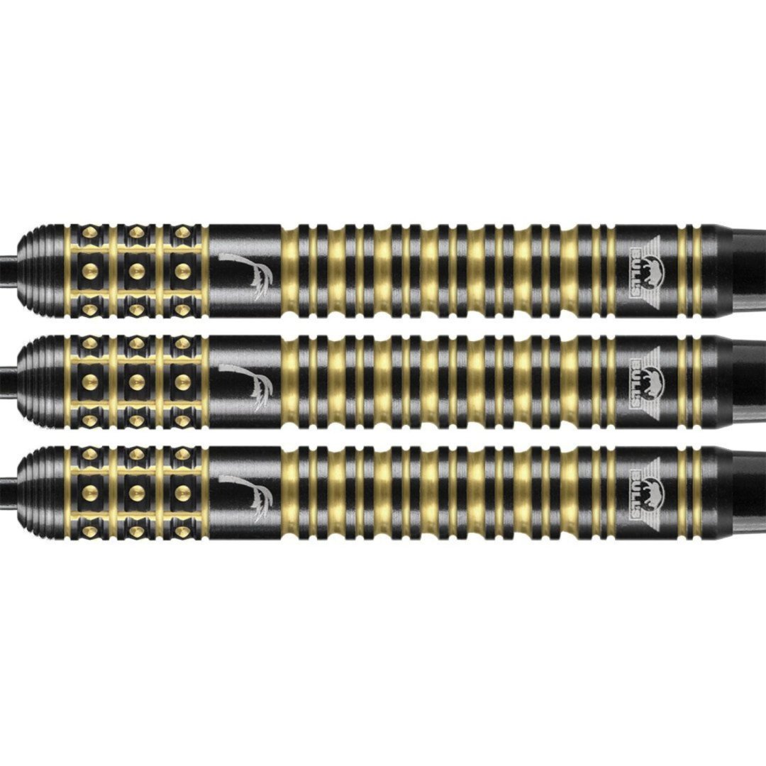 Kim Huybrechts Steel Darts - Black E2 to rzutki wolframowe (90% wolframu) z czarnymi lufami, które mają złote rowki, co nadaje rzutce wyjątkowy, elegancki wygląd.