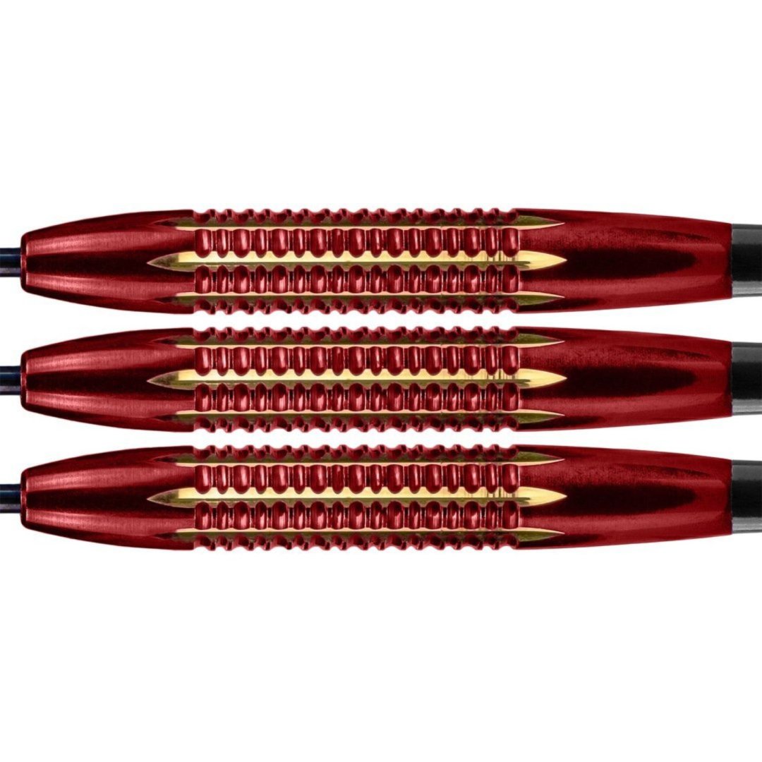Stalowe lotki Kim Huybrechts Hurricane to mosiężne lotki z czerwonymi i złotymi lufami.