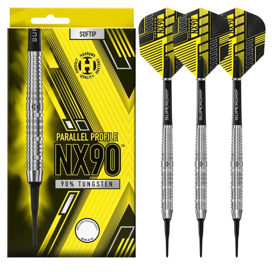 Miękkie lotki NX90 to lotki wolframowe (90% wolframu) z lufami rowkowanymi na całej długości. Beczki o równoległym kształcie mają równomiernie rozłożony środek ciężkości. W zestawie znajdują się uchwyty Supergrip i pałki NX90.