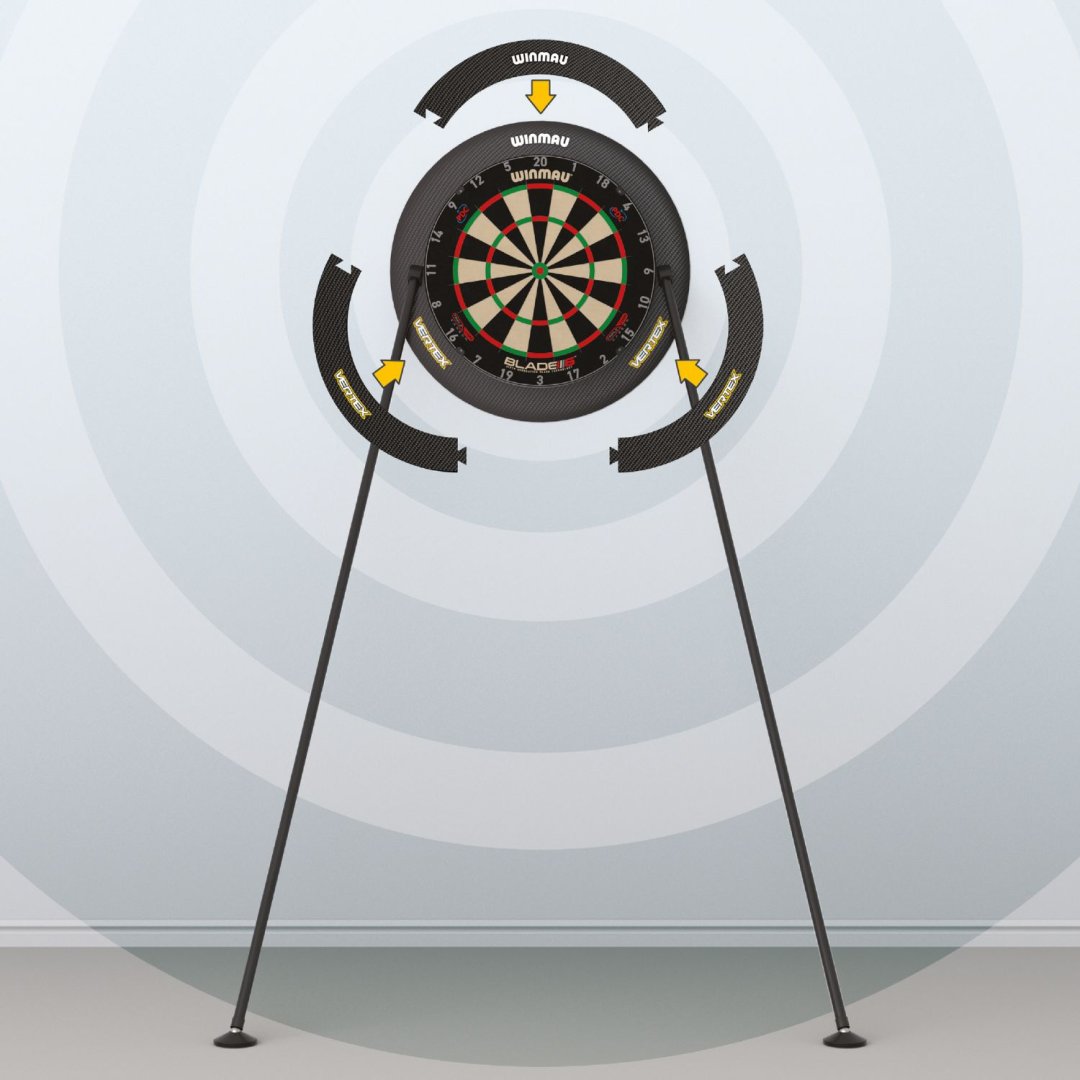 Winmau Vertex Dartboard Stand to przenośny, szybko montowany sizalowy stojak na tarcze, który pozwala na grę niemal wszędzie.