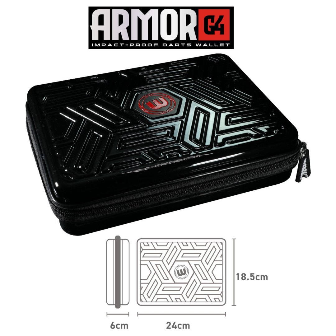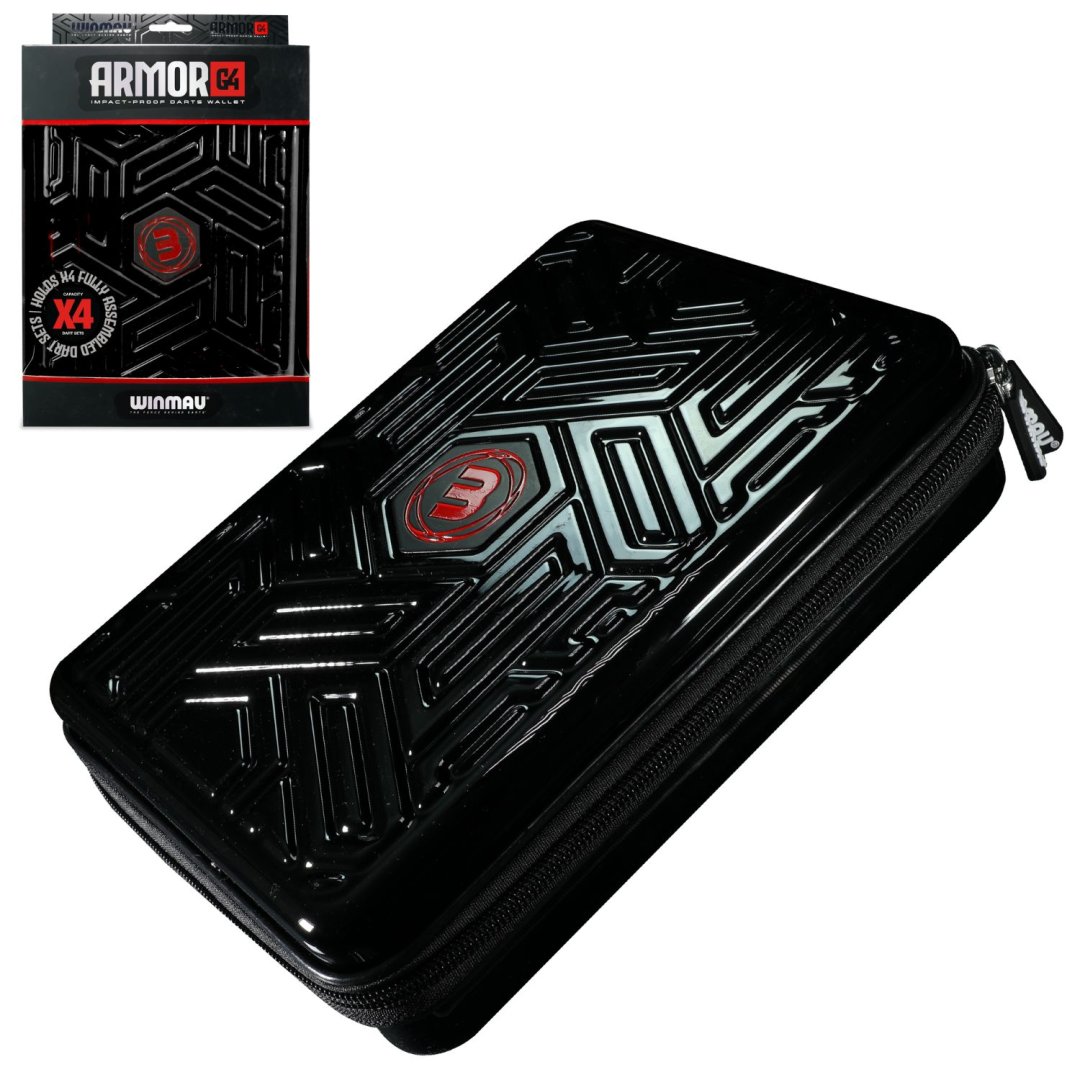 Nowoczesne etui na lotki Winmau Armor G4 to przestronne etui o doskonałej konstrukcji, które zapewnia ochronę dla czterech zestawów złożonych lotek bez konieczności wyjmowania eskadr. Etui ma wewnątrz kieszenie na akcesoria i jest wystarczająco mocne, aby nie ściskać eskadr w środku. Etui jest w kolorze czarnym i ozdobione logo Winmau.