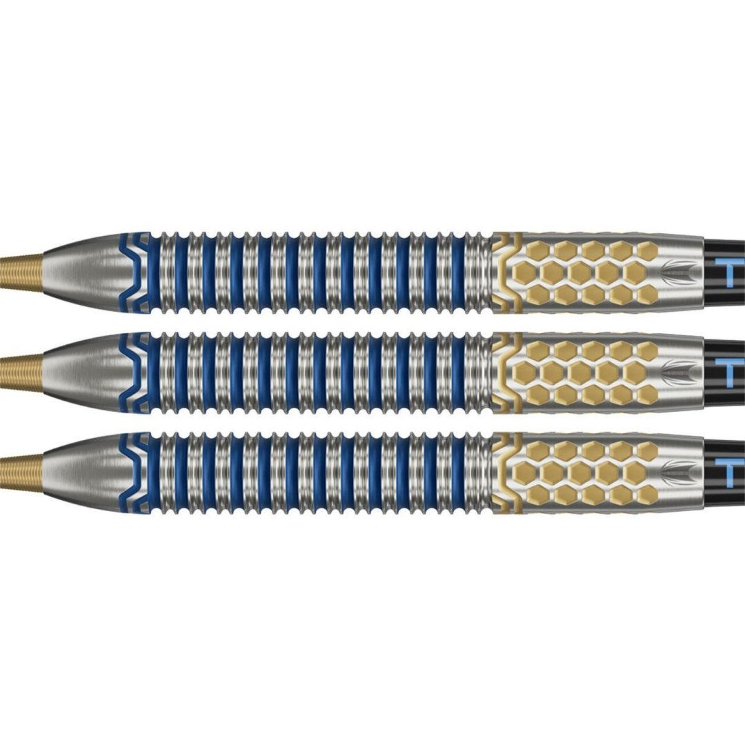 Stalowe lotki wolframowe Josh Rock G1 SP (90% wolframu) to lotki o unikalnym designie. Beczki mają oryginalne rowki, które są podkreślone niebieskim i złotym kolorem. Lufy są wyposażone w nylonowe uchwyty, pałki Josh Rock i końcówki Swiss Point.