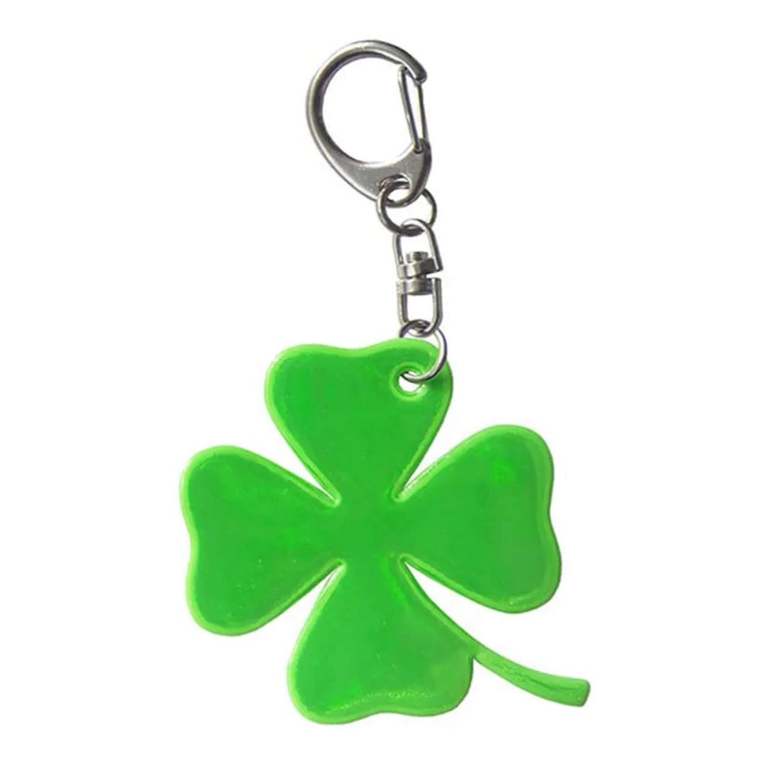 Brelok do kluczy w kształcie czterolistnej koniczyny wykonany z odblaskowego materiału. Idealny do kluczy, plecaka lub torby.