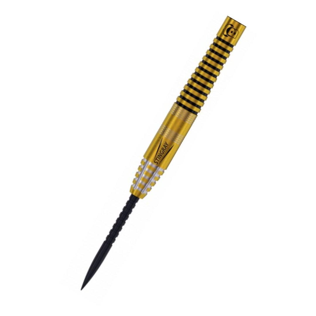 Stalowe lotki Bull's Stingray to wysokiej jakości lotki wolframowe (90% wolframu) ze złotymi lufami o eleganckim wyglądzie. Lufy są uzupełnione nylonowymi uchwytami i pałkami Stingray.