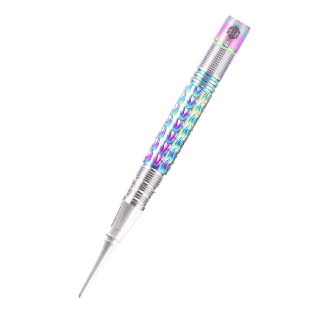 Caliburn Player - miękkie lotki Rynit to wolframowe lotki (95% wolframu) o oszałamiającym wyglądzie. Beczki mają unikalne rowki podkreślone tęczowymi kolorami. Rzutki są wyposażone w plastikowy uchwyt.