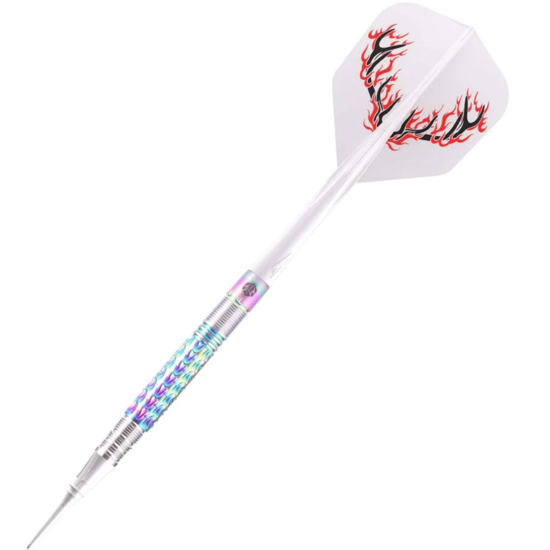 Caliburn Player - miękkie lotki Rynit to wolframowe lotki (95% wolframu) o oszałamiającym wyglądzie. Beczki mają unikalne rowki podkreślone tęczowymi kolorami.