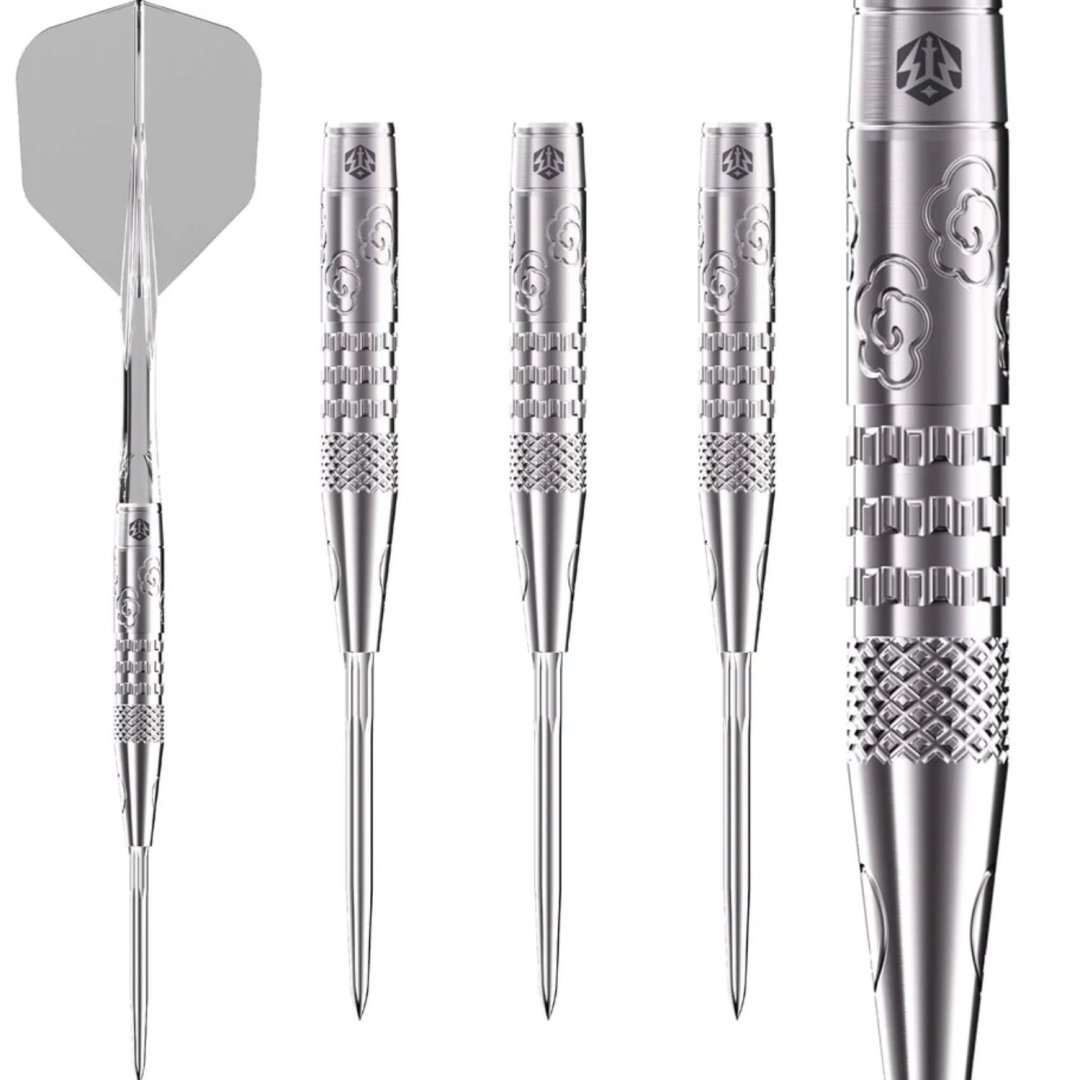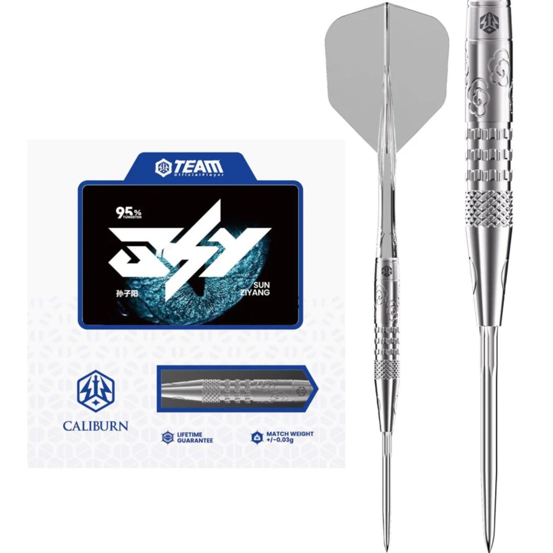 Stalowe rzutki Caliburn Player - Sky to wolframowe rzutki (95% wolframu) z lufami o oryginalnym designie. Lufy są uzupełnione plastikowymi uchwytami. Rzutki posiadają system wymiennych końcówek Caliburn. W zestawie znajduje się również klucz do wymiany końcówek Caliburn (X1997).