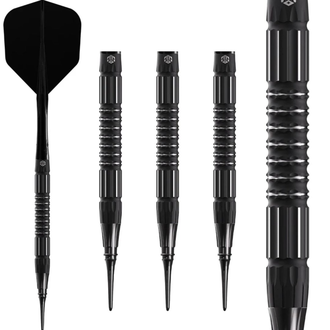 Miękkie rzutki Caliburn Sword to wolframowe rzutki (95% wolframu) o oszałamiającym wyglądzie. Czarne beczki mają unikalne rowki i idealnie pasują do dłoni. Rzutki są wyposażone w plastikowe uchwyty.